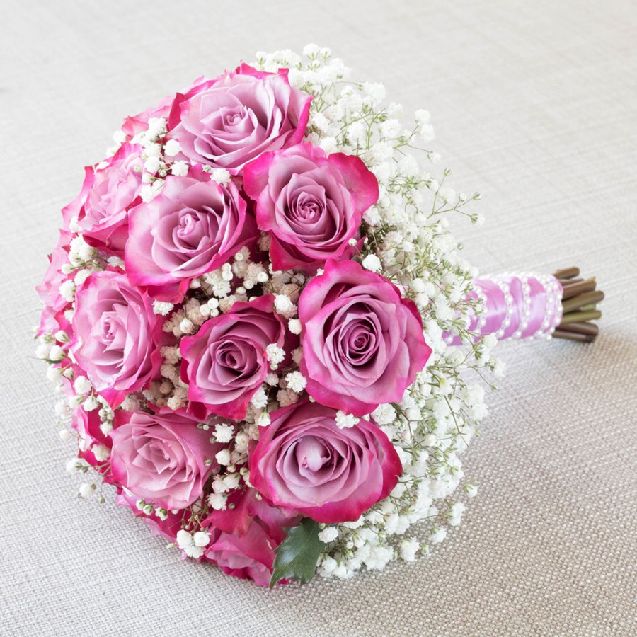 Celebrate your special day with the Forever Together Bridal Bouquet from Flowers Wealdstone. This elegant hand-tied arrangement features luxurious purple roses paired with delicate gypsophila, creating a romantic and timeless bridal bouquet that suits any wedding style. The soft cloud of gypsophila beautifully frames the rich purple blooms, adding texture and lightness for a picture-perfect finish in every photo.